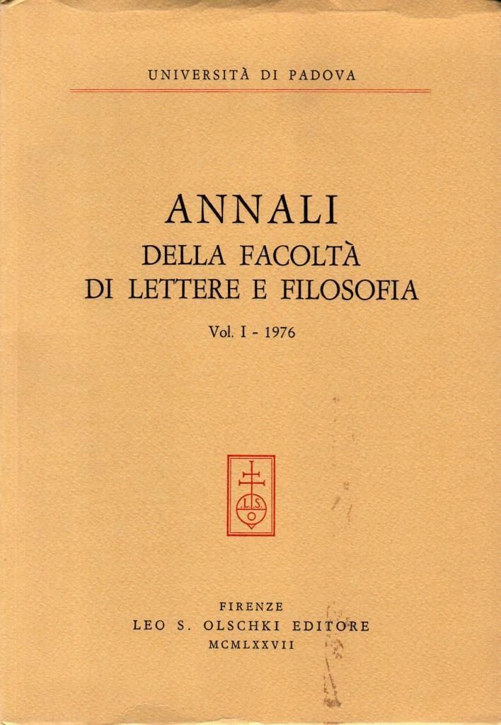 "Annali della facoltà di lettere e filosofia. Vol. I - 1976", edizione 1977, pp. 359, formato 17 x 24,5.