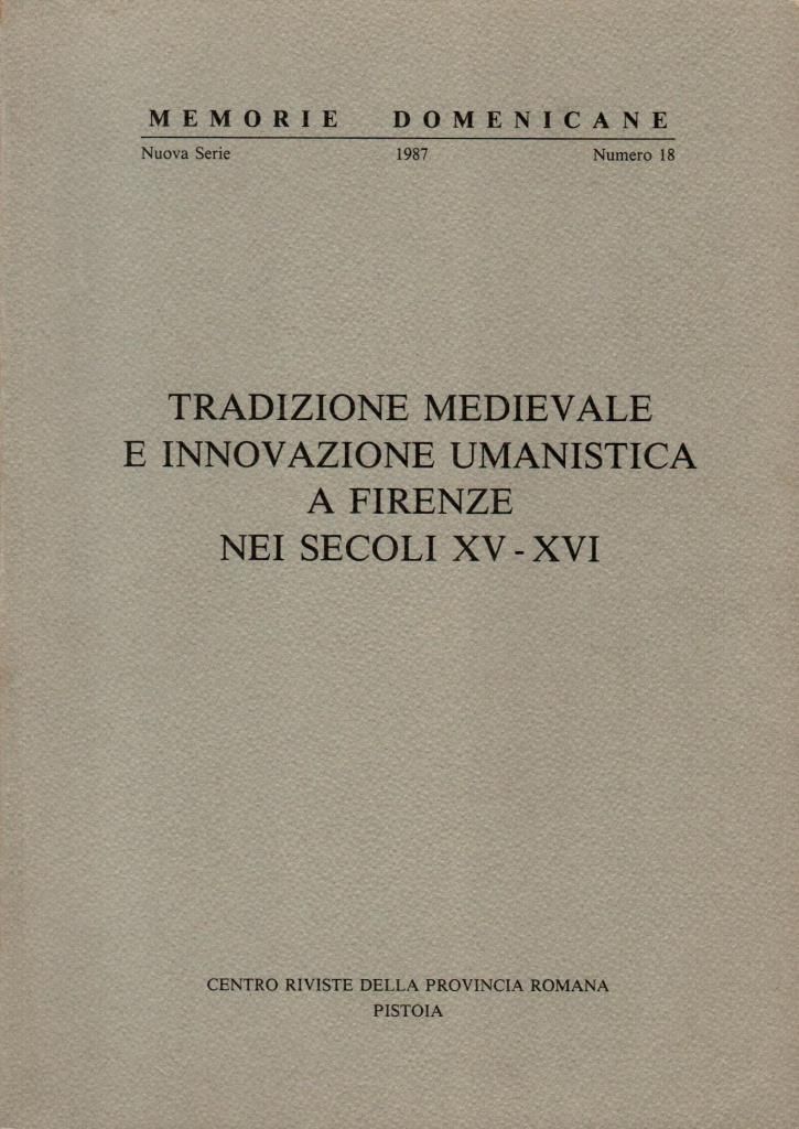 "Tradizione medievale e innovazione umanistica a Firenze nei secoli XV-XVI", edizione 1987, pp. 437, formato 17 x 24.