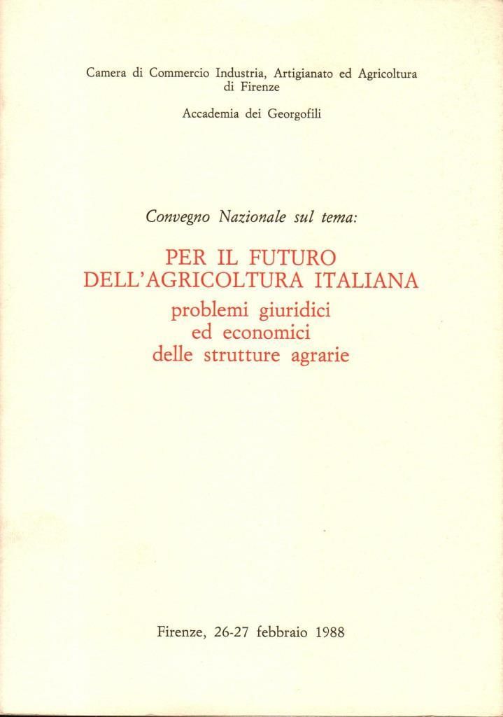 "Per il futuro dell'agricoltura italiana problemi giuridici ed economici delle strutture agrarie", edizione 1989, pp. 148, formato 17 x 24.
