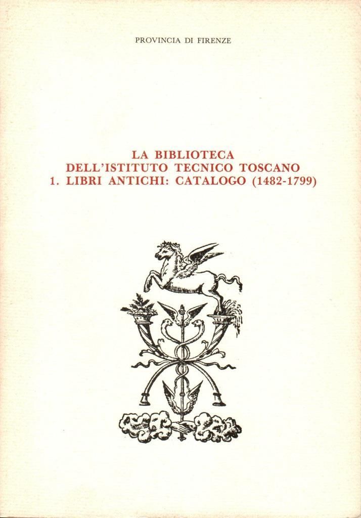 "La biblioteca dell'istituto tecnico toscano 1 Libri antichi: catalogo (1482-1799)", edizione 1986, pp. 159, formato 17 x 24.