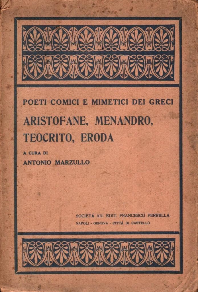 "Poeti comici e mimetici dei greci. Aristofane, Menandro, Teocrito, Eroda", edizione 1926, pp. 216, formato 14,5 x 21,5.
